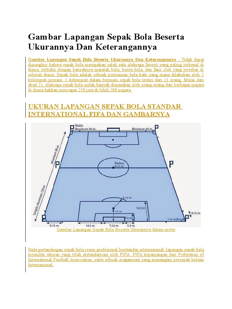 Gambar Lapangan Sepak Bola Lengkap Dengan Ukurannya Yang Sesuai Dengan